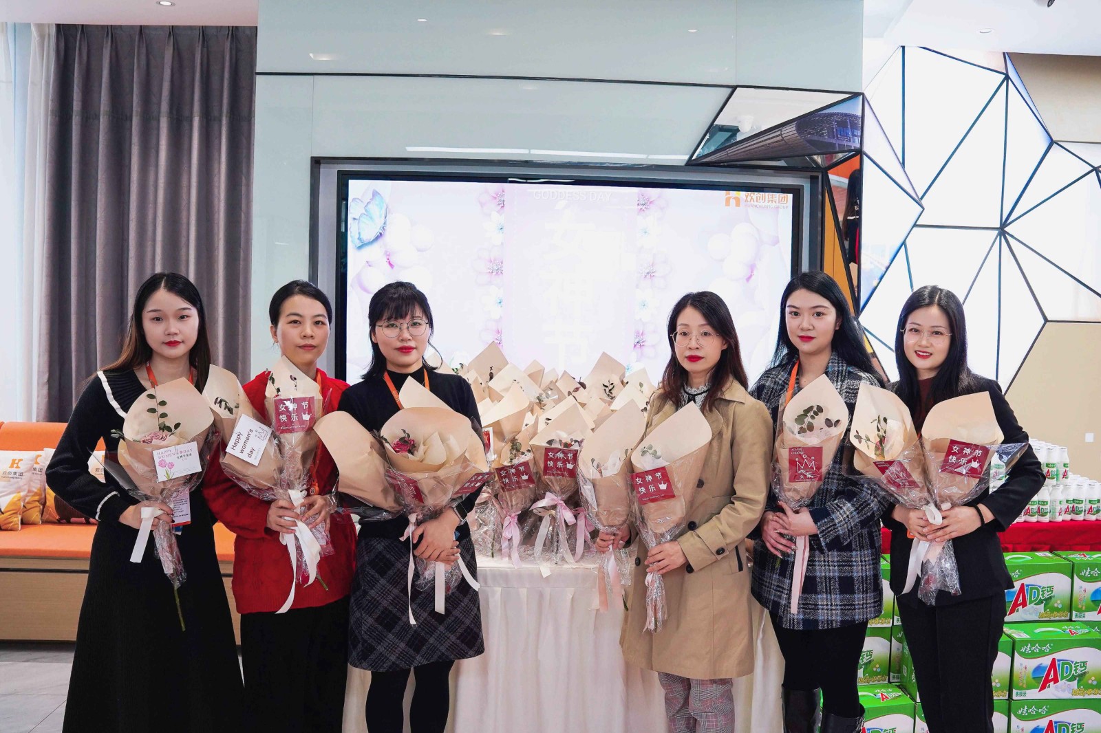 广发在线平台(中国)集团副总裁赵婷带领人事行政部的小姐姐,向广发在线平台(中国)女神们派发礼物,办公室洋溢着欢声笑语。